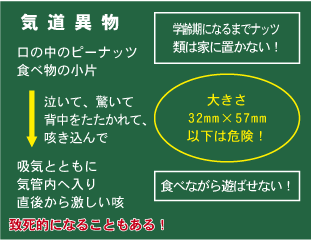 ピーナッツなどのナッツ類は、乳幼児がいる家では置かないように。