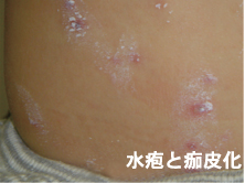先に出た発疹から次々に水疱、痂皮化していきます。