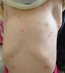 見た目には、湿疹や小さな虫さされと似た感じになります。